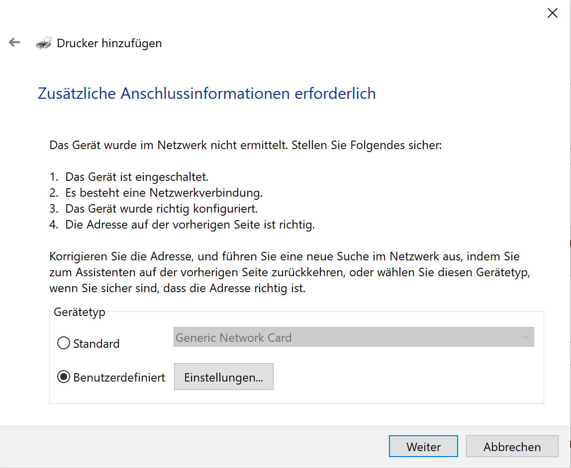 4.2. Drucker unter Verwendung einer IP-Adresse oder eines Hostnamens hinzufügen.