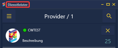 In diesem Beispiel wird der Fenstertitel zu "Dienstleister" geändert.