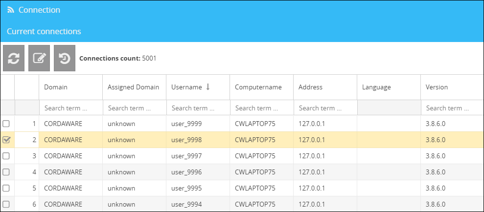 Please note that only connected clients will be displayed. Clients that are not displayed at refreshing time (opening app for the first time or refreshing the grid) are not connected.