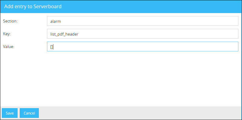 To insert your own header in the alarm plan, it is necessary to create an entry in the Serverboard (System -> Serverboard).