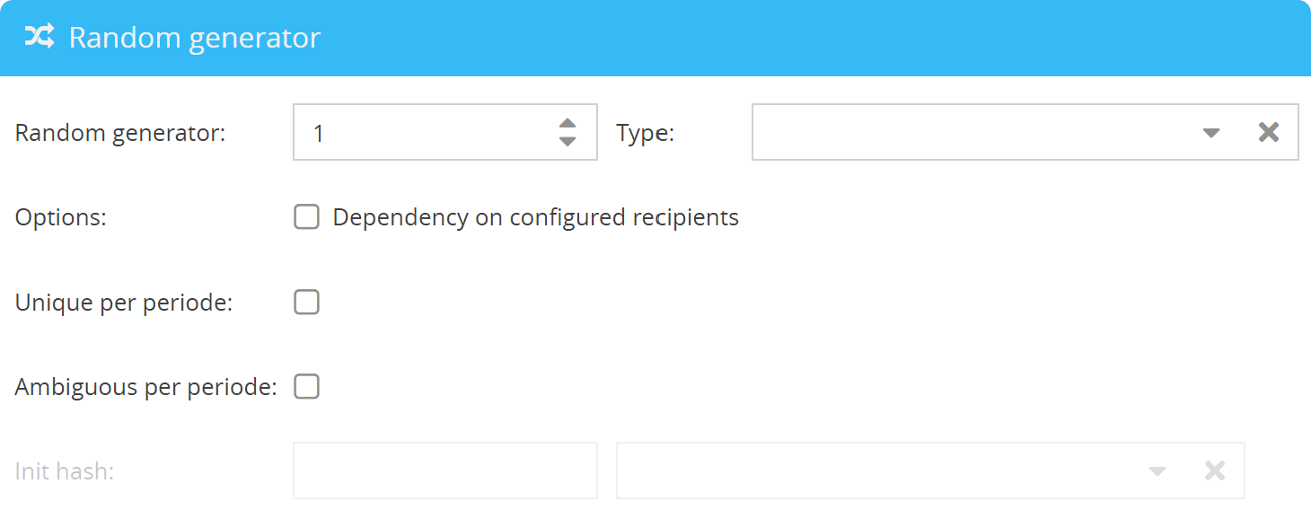 Within the user tab you have the possibility to define a random recipient group. The random generator is available for this purpose:
