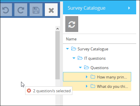 Survey catalogues are collections of custom or imported questions which can be accessed from the routing interface. There you can simply drag and drop the questions from a catalogue into your routing interface and add it to your survey.