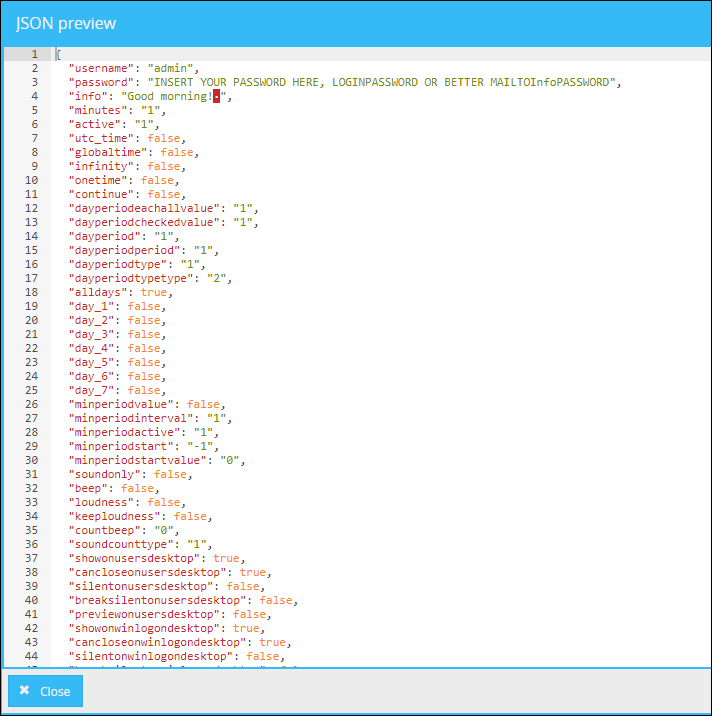 The JSON preview can be used in order to view your info in the JSON syntax.